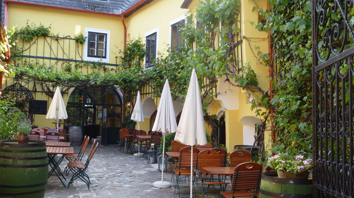 Nous n’aurons pas eu l’occasion de découvrir l’ambiance des « heuriger » le soir. Bien que ce lieu soit touristique en raison de sa situation, c’est vraiment un endroit sympathique. Nous essaierons les « Beísl », ces tavernes viennoises typiques une autre fois. Nous sommes entrés dans le très bel établissement Griechenbeisl qui je le crains a perdu en authenticité en raison du tourisme.