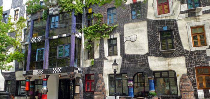Ensuite, direction le 3e arrondissement (Landstraße) pour découvrir la maison Hundertwasserhaus. Cette maison écologique, à l’architecture géniale et surprenante, a été conçue en 1983 par le peintre autrichien Friedensreich Hundertwasser. La façade bariolée et multicolore est composée d’éléments en verre, métal, brique, bois et carreaux de céramique, avec des terrasses arborées, des fenêtres de tailles et de formes différentes, des piliers baroques. Tout près, nous avons visité la Kunst Haus Vienne, avec la même architecture, une maison-musée qui propose une rétrospective de l’œuvre de Hundertwasser (peinture, graphisme, architecture) et des expositions photographiques temporaires. Nous nous sommes restaurés au « Bistro » avec une délicieuse salade composée.