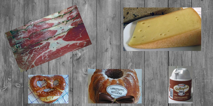 Les vitrines de fromages ( autrichiens, allemands, suisses français et italiens) et de charcuterie ( avec le speck entre autres) nous ont mis l’eau à la bouche.