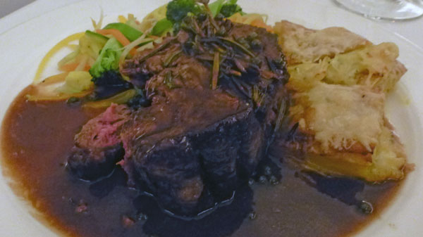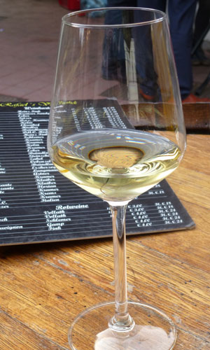Les prix (entre 3 et 4,50 €) nous ont paru corrects mais la surprise fut la quantité : 1/8. Encore aujourd’hui je n’ai pas élucidé s’il s’agissait d’ 1/8 de bouteille, de pinte ou de litre. Dans le verre, il nous a semblé que cela représentait autour de 10 cl.