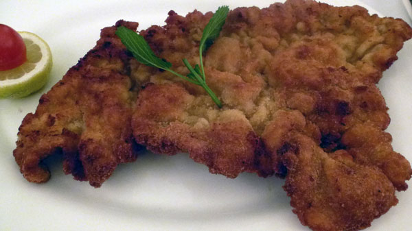 Après le concert, nous avons opté pour un sympathique restaurant situé tout près du marché et qui sert jusqu’à 23h30, l’Amacord. Nous y avons bien dînė, dans une ambiance décontractée : je me suis décidée pour le schnitzel (escalope de veau panée) copieux et savoureux accompagné d’une belle salade composée, avec des pommes de terre et mon cher et tendre a choisi un pavé de bœuf au poivre, succulent, servi avec un gratin de pommes de terre. Le tout accompagné de verres de vin autrichien, bien-entendu : une cuvée Patritus Weingut Gmeiner avec un cépage Pinot Noir et un merlot Hannes Reeh. Nous avons fait l’impasse sur le dessert.
