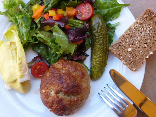 Berlin est une ville cosmopolite où se côtoient des communautés appartenant à diverses ethnies mais c'est aussi une ville qui attire des jeunes et des moins jeunes, étudiants, employés, entrepreneurs, touristes... Cela se ressent dans la cuisine influencée par tous ces courants culturels. Au cours de la semaine, nous avons dîné dans un restaurant Grec et un restaurant Italien, mais je préfère vous parler des plats allemands que nous avons goûtés. Ils sont généralement assez consistants et nourrissants. Dans les snacks ou les restaurants, le plat est toujours accompagné d'une coupelle de salade composée, ce qui est fort agréable.