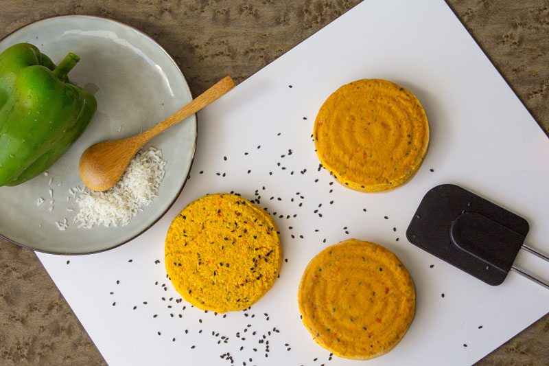 Burgers aux graines de lupin, coco et poivron