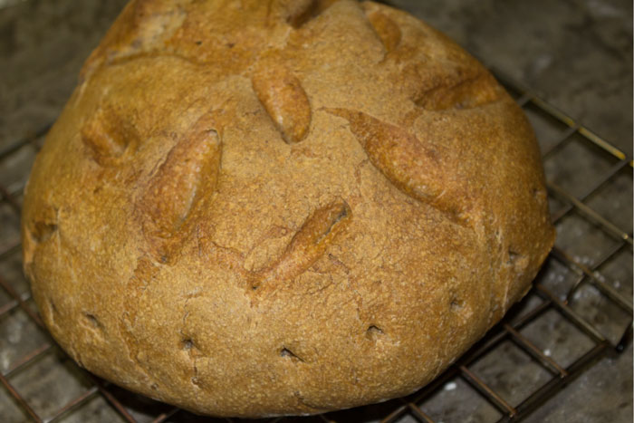 16. Enfourner et laisser cuire 35 minutes pour un pain préparé avec 500 grammes de farine. Il va gonfler et une belle croute dorée va se former.