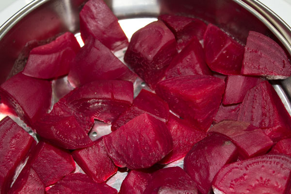 Si je suis vraiment pressée, j'épluche les betteraves, je les coupe en dés et je les fais cuire à la vapeur * comme indiqué plus haut, en moins de 30 minutes.