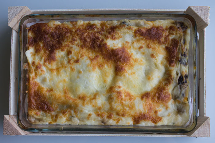 - Recouvrir de plaque(s) de lasagnes, verser une belle couche de béchamel et répartir les champignons, puis parsemer de persil. En fonction de la taille de votre plat, vous pouvez réaliser 3 ou 4 étages.