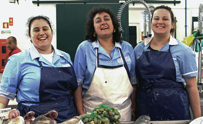 Je termine avec une photographie de ma poissonnière de Lisbonne avec ses filles, au marché d’Algés.