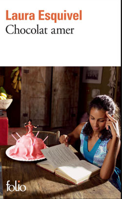 "Dans le Mexique du début du siècle, en pleine tempête révolutionnaire, Tita, éperdument éprise de Pedro, brave les interdits pour vivre une impossible passion. À cette intrigue empruntée à la littérature sentimentale, Laura Esquivel mêle des recettes de cuisine. Car Tita possède d'étranges talents culinaires : ses cailles aux pétales de roses ont un effet aphrodisiaque, ses gâteaux un pouvoir destructeur. L'amour de la vie est exalté dans ces pages d'un style joyeux et tendre, dont le réalisme magique renvoie aux grandes oeuvres de la littérature latino-américaine. Chocolat amer, adapté en film sous le titre Les épices de la passion, s'est vendu à plus de quatre millions d'exemplaires dans le monde."