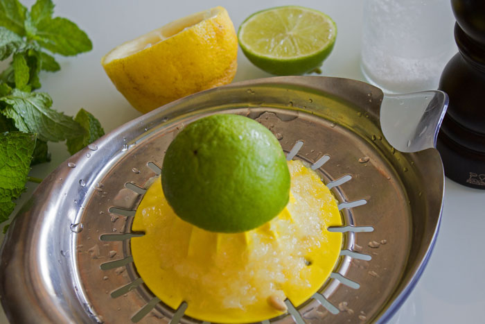 6. Je presse les citrons que je verse ensuite dans le saladier puis je mélange.