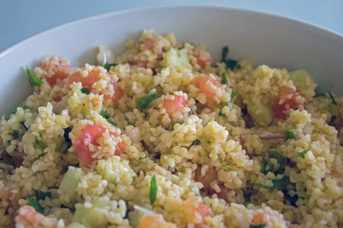 √ Sur les emballages de boulgour biologique, ils recommandent de faire cuire le boulgour durant quelques minutes à la casserole. Je le fais uniquement lorsque je le prépare nature ( voir Ma recette de boulgour nature) mais pour le taboulé, il suffit de le faire gonfler, puis d'ajouter les ingrédients qui sont très juteux.