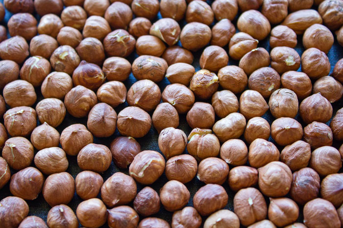 Secouer puis essuyer les noisettes afin de les débarrasser au maximum des particules de peau.