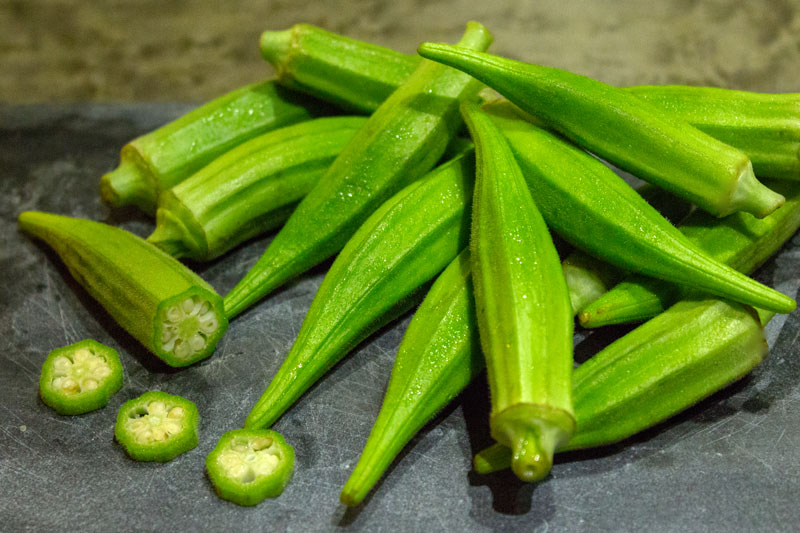 Les fruits du gombo sont recouverts de petits poils très fins et il doivent leur texture à la présence de mucilage, bénéfique pour la santé mais guère agréable au contact.
