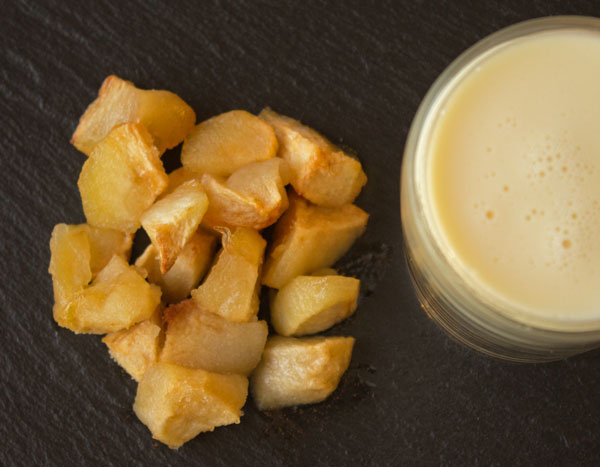 - Laver, éplucher puis couper les pommes en petits cubes de 2 cm environ.