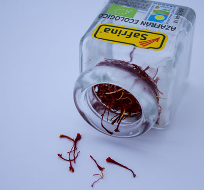 Les fleurs de Safran sont violettes, veinées de rouge et possèdent un pistil avec trois stigmates, des filaments d'une couleur brun rouge. Ce sont les filaments provenant des fleurs de Safran qui sont cueillis à la main puis séchés. Il faut environ 1000 fleurs pour obtenir 5 g de Safran ce qui explique son prix prohibitif. Cependant une pincée de stigmates a un poids bien inférieur à 1 gramme ! Comptez 4 à 5 stigmates par personne. Les poudres de Safran sont souvent des mélanges.