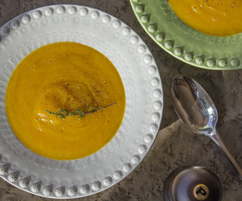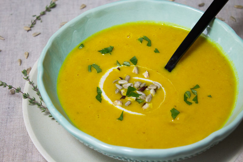 Il fait un « froid de canard », c’est bientôt l’heure du déjeuner et vous avez envie de manger quelque chose de chaud, léger et rapide ? … préparé à la casserole, sans robot. Qu’à cela ne tienne ! Avec 4 légumes, un peu d’ail et quelques épices votre soupe sera prête à déguster dans moins de quarante minutes. Pour ma part, j’ai même eu le temps de faire des photos !