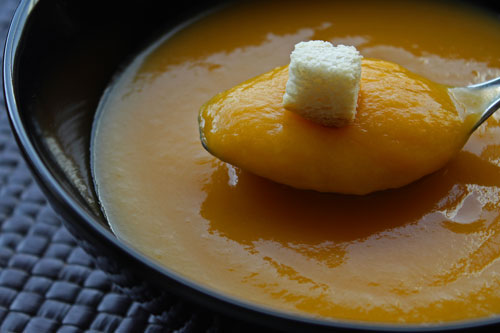 Une recette simplissime de soupe sans matières grasses. J'ai proposé de petits croutons natures pour cette soupe diététique qui plaît aux petits comme aux grands.
