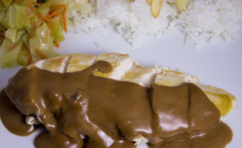 Une alliance insolite entre ces blancs de poulet bio cuits à basse température au four et la sauce au chocolat noir parfumée au piment, cardamome, curcuma et cannelle. Les suprêmes, cuits à 90ºC au four sont succulents et la sauce leur donne une touche très gourmande.
