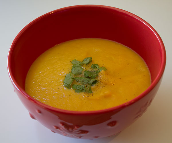 J'ai servi en déposant, sur chaque bol, de la coriandre et en donnant un tour de moulin à poivre.