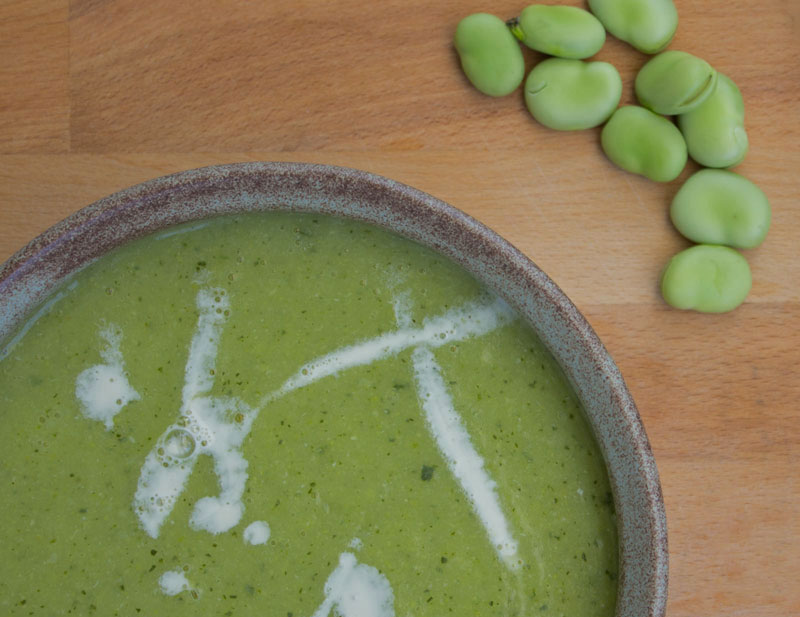 Velouté de fèves, courgettes et pommes de terre