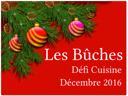 Vous pouvez participer en proposant 1 à 3 recettes de bûches, à partir du 1er décembre 2016 jusqu’au 3 janvier 2016, douzième coup de minuit inclus ! (3 jours en plus pour pouvoir participer avec vos recettes faites pour le 31)